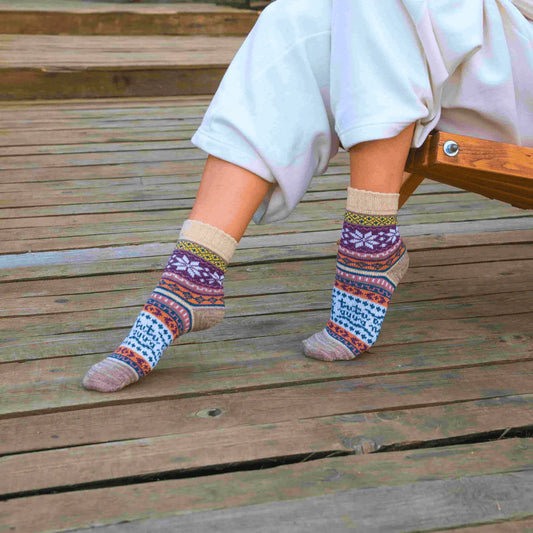 At Mia & Noah, everything revolves around our passion for comfort and performance. We believe that high-quality wool socks are more than just a basic essential – they support your journey and reflect your lifestyle. We carefully select the softest, most durable wool blends, ensuring each pair is both cozy and built to last. Whether you're hiking, camping, or staying warm at home, you’ll find the perfect socks to match your needs and style.